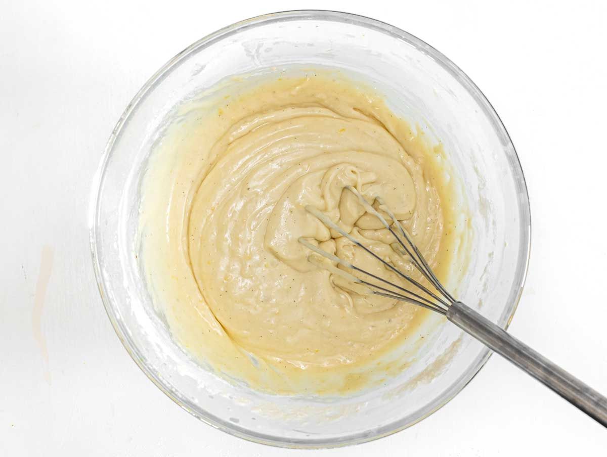 4. Whisk for a short minute until lumps are gone, but without over-mixing. You can use a hand whisk or an electric whisk.
